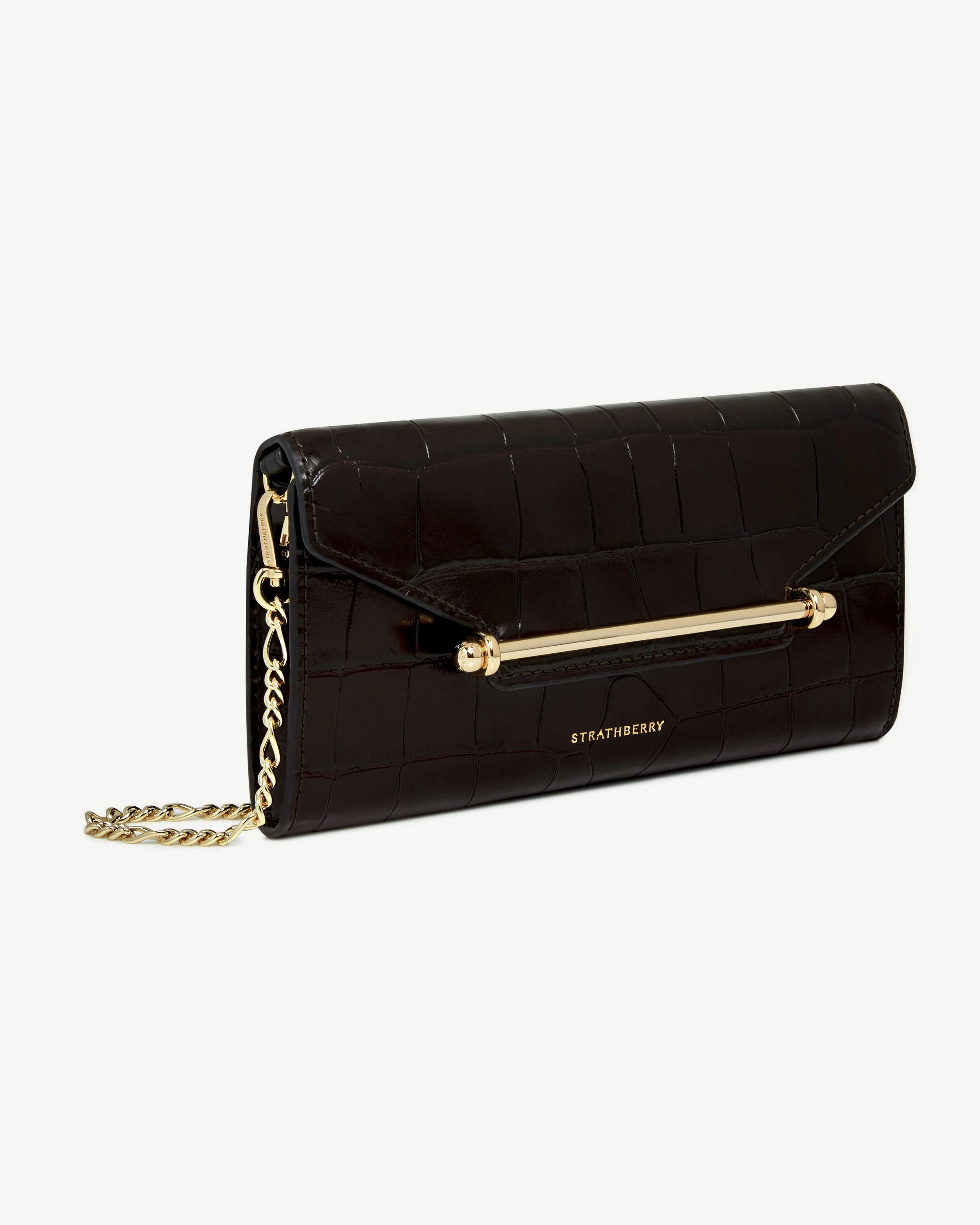 Multrees Chain Wallet - Croc-Embossed Leather Mahogany/Black